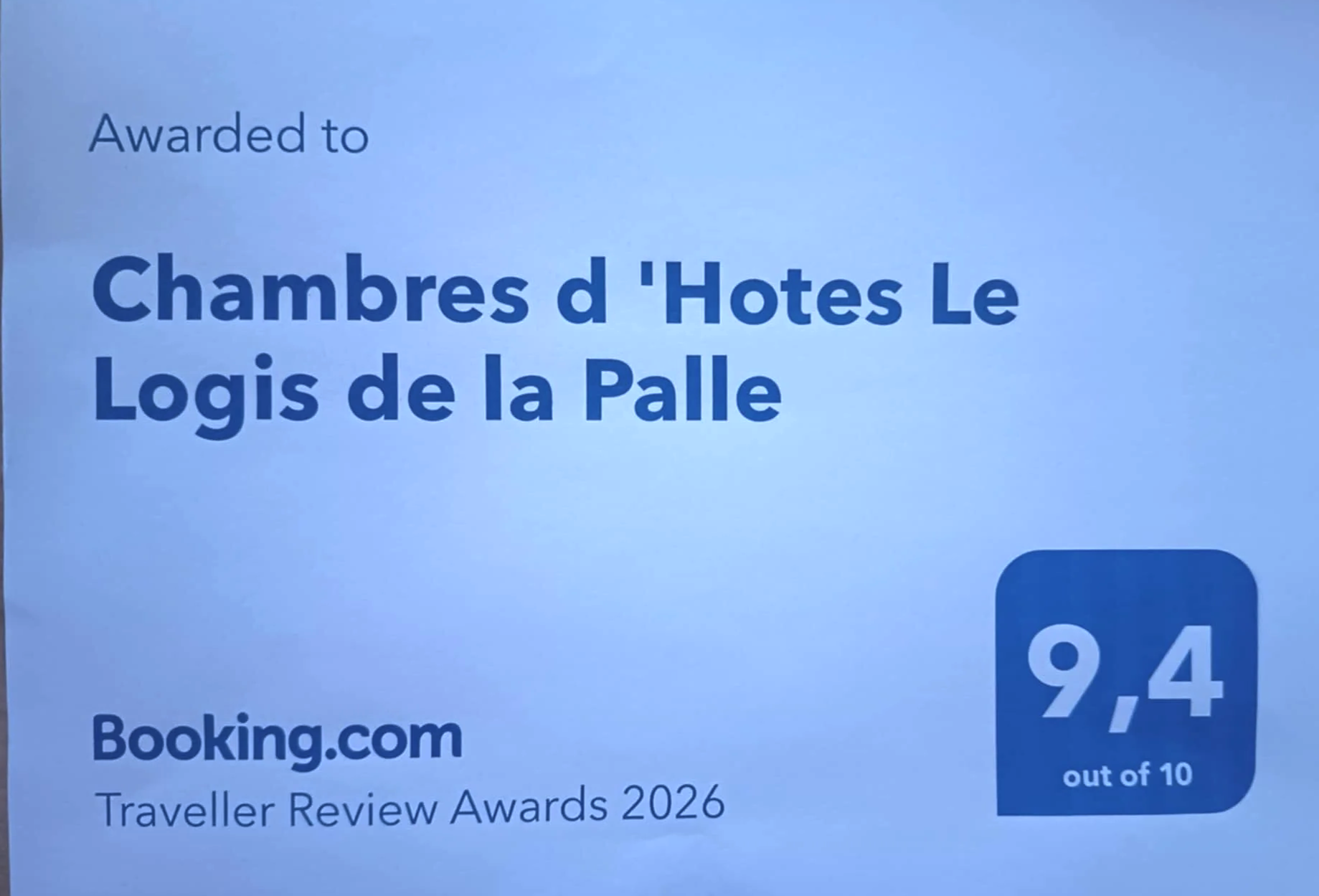 En itinérance à vélo, nous avons été chouchoutés lors de notre étape au logis de la Palle. Garage à vélo fermé, cuisine commune, pour se préparer un repas simple, un étendoir à linge, une suite familiale confortable, spacieuse et décorée avec goûts… un petit-déjeuner inclus dans le prix dont nous nous souvenons encore : brioche, cookies maison, mini croques… miam ! La suite familiale a accès à un petit jardin privatif avec mobilier de jardin. L’accueil et les attentions de notre hôte étaient parfaits. Les informations touristiques sur la région sont disponibles. Sur les 10 nuits de nos vacances, celle du logis de la Palle a été la meilleure, merci pour le moment !
