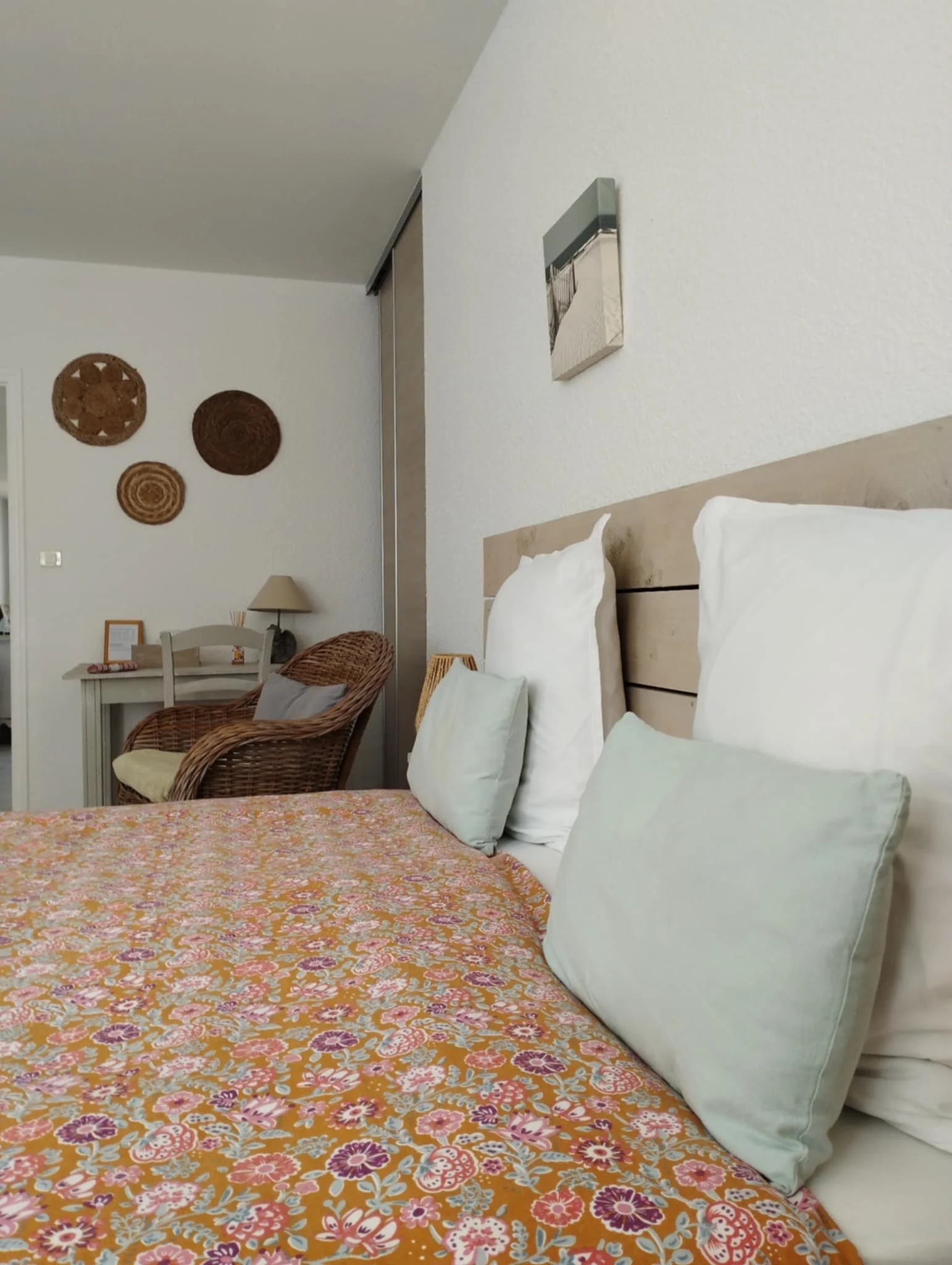 Nous vous accueillons dans notre chambre Capucine ou dans notre chambre familiale Agapanthe.